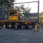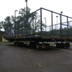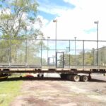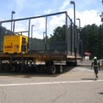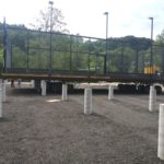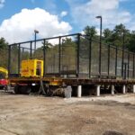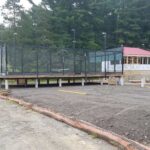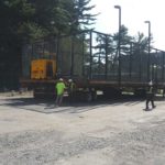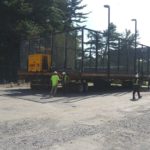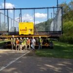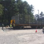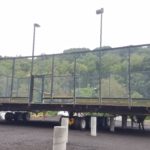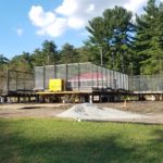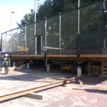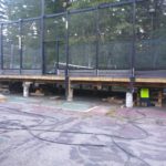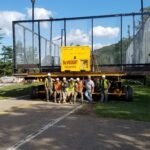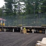 By dinner time Thursday, the DeVooght and Dingey teams had prepped, moved and set down all four self-contained paddle ball courts. While the units were relatively light, the team had to maneuver the 30’ by 60’ units’ tall light poles around the heavily treed roadways.