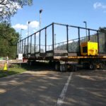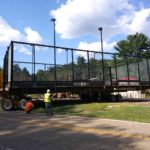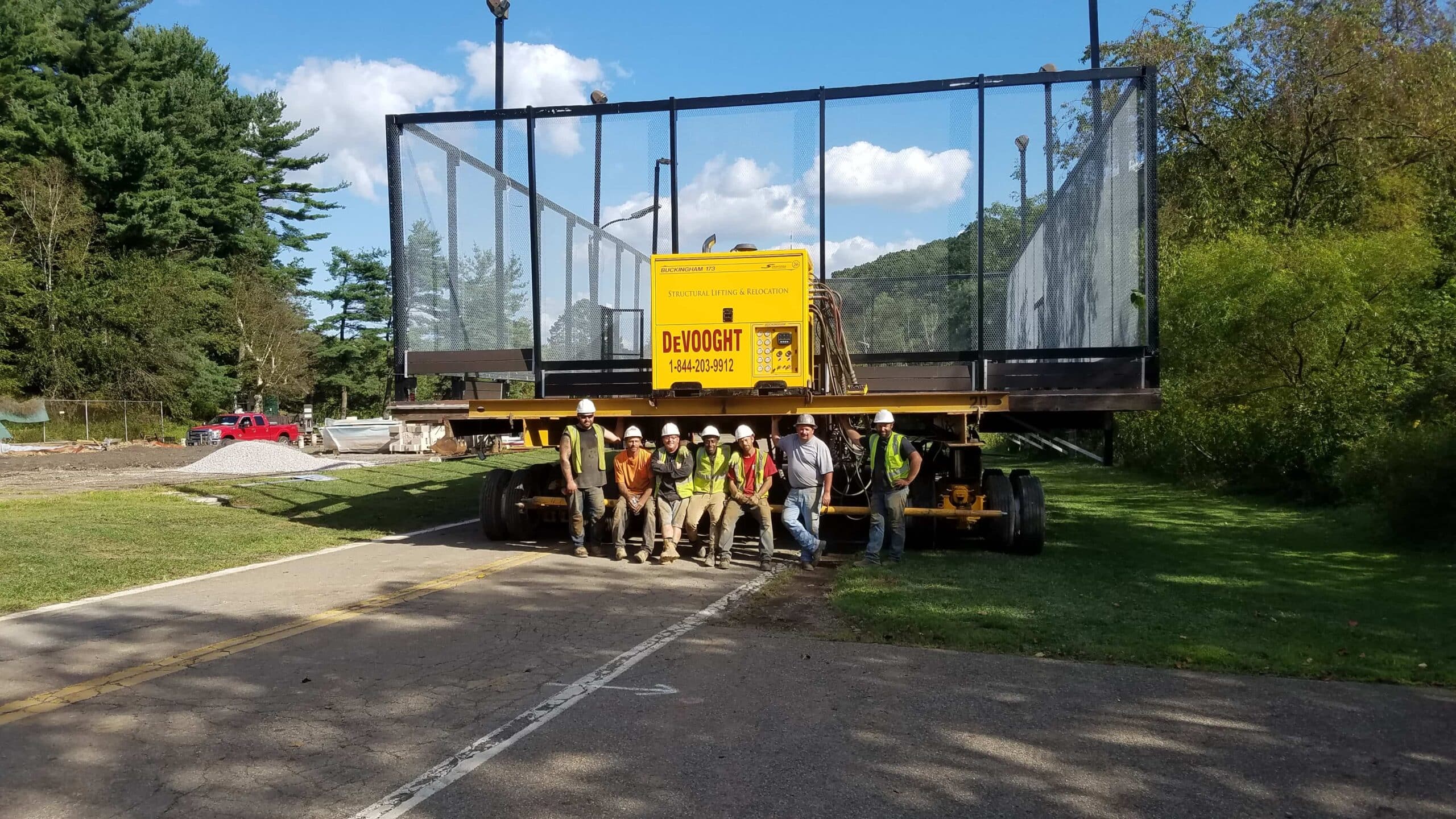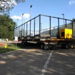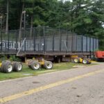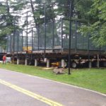 With the 2019 Labor Day holiday just a few days away, Bart Dingey, Dingey House Movers, received a phone call to the relocate four platform tennis/paddle ball courts in located in Allison Park, Pennsylvania, a suburb of Pittsburg. The self-contained structures, located within an existing tennis court park, needed to be moved on a tree-lined roadway within the park grounds.