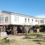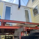 Another house ready for a new elevated foundation in Marshallberg, North Carolina! This 70-ton home featured 2 fireplaces and a room on a slab foundation. We lifted both fireplaces AND the slab floor … setting the house 8 feet in the air on 12 crib towers.